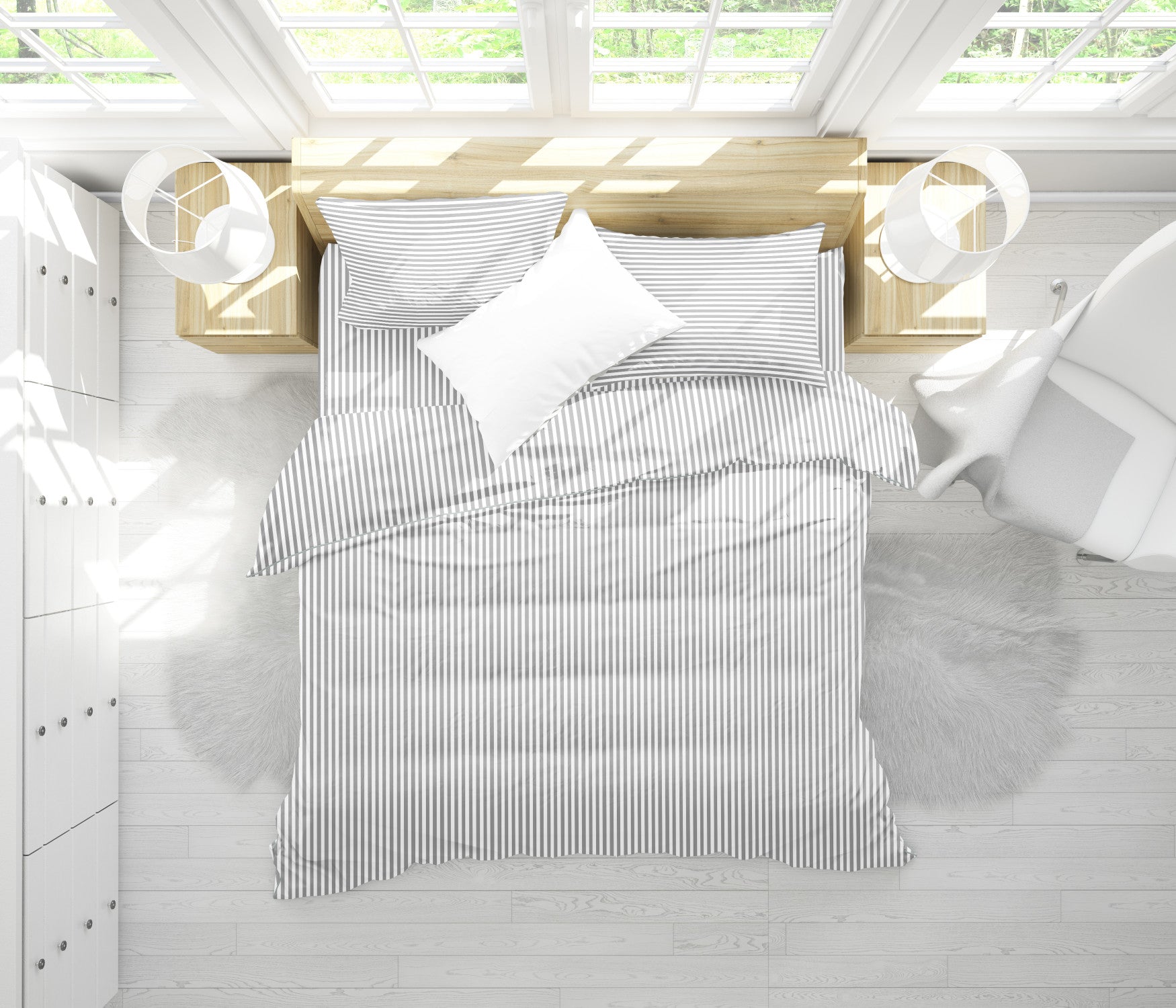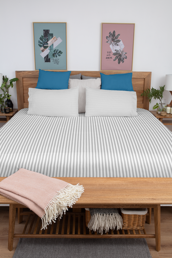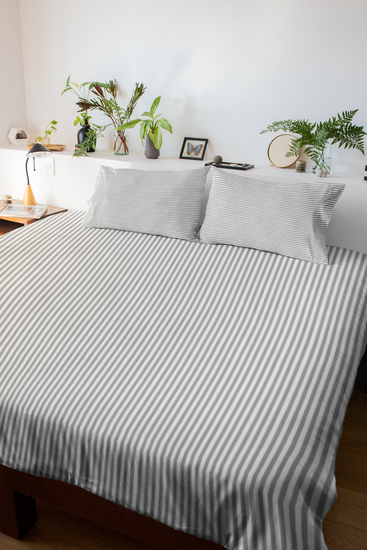 Komplet pościeli 4-cz. satyna bawełniana Optic White w paski 160x220 cm
