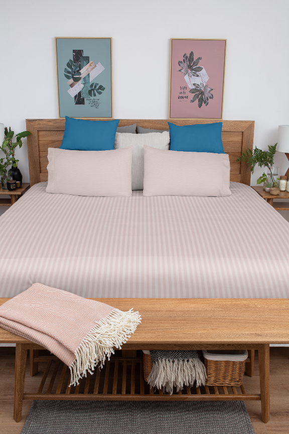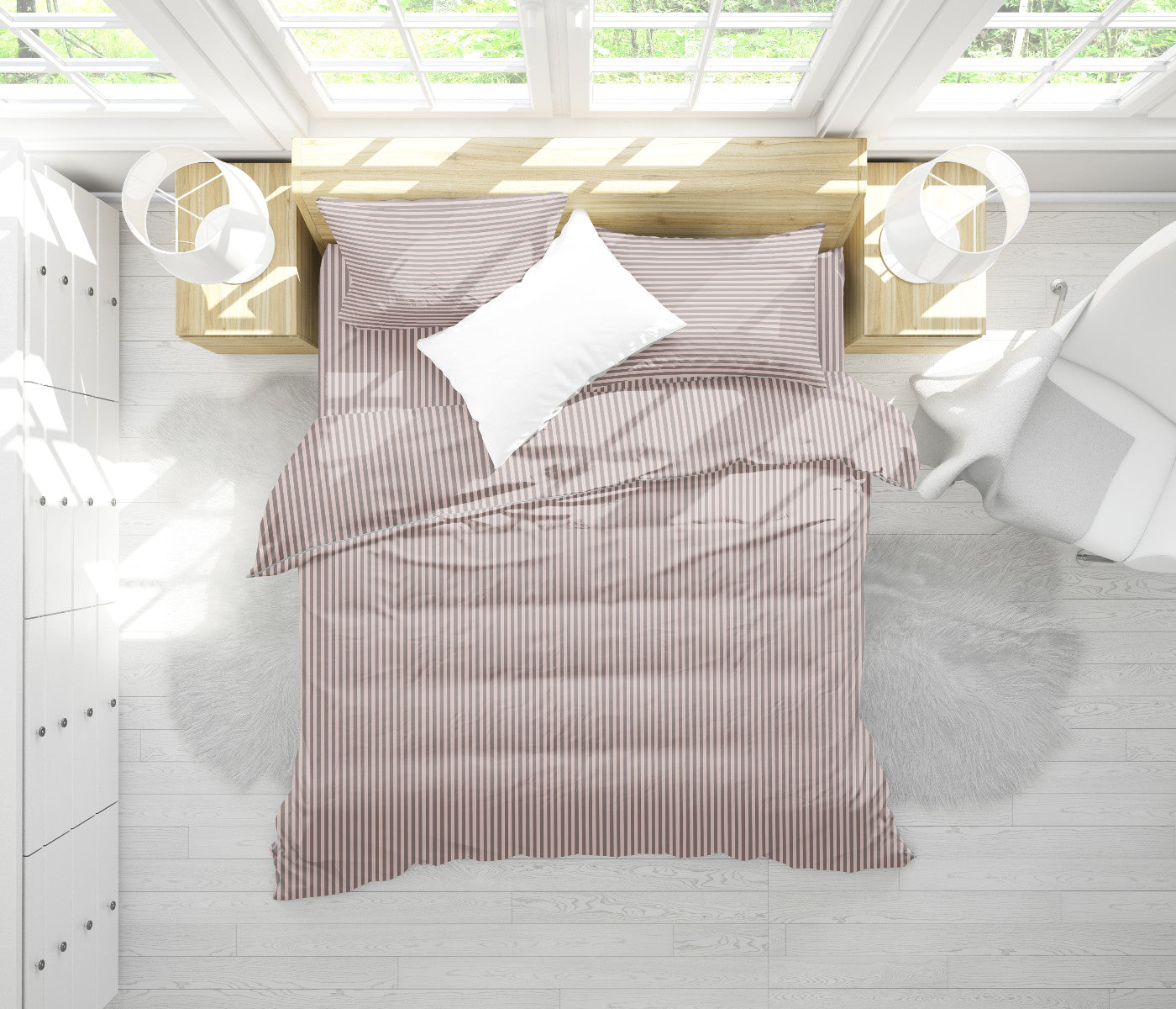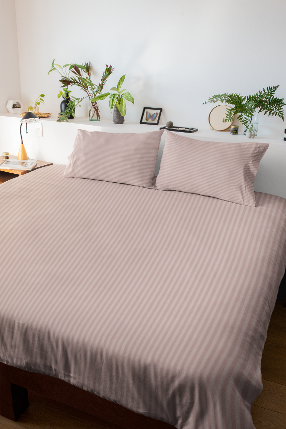 Komplet pościeli 4-cz. satyna bawełniana Sepia Rose w paski 160x220 cm to elegancki zestaw w subtelny wzór w paski w romantycznym odcieniu różu z nutą sepii – idealny do przytulnych wnętrz.