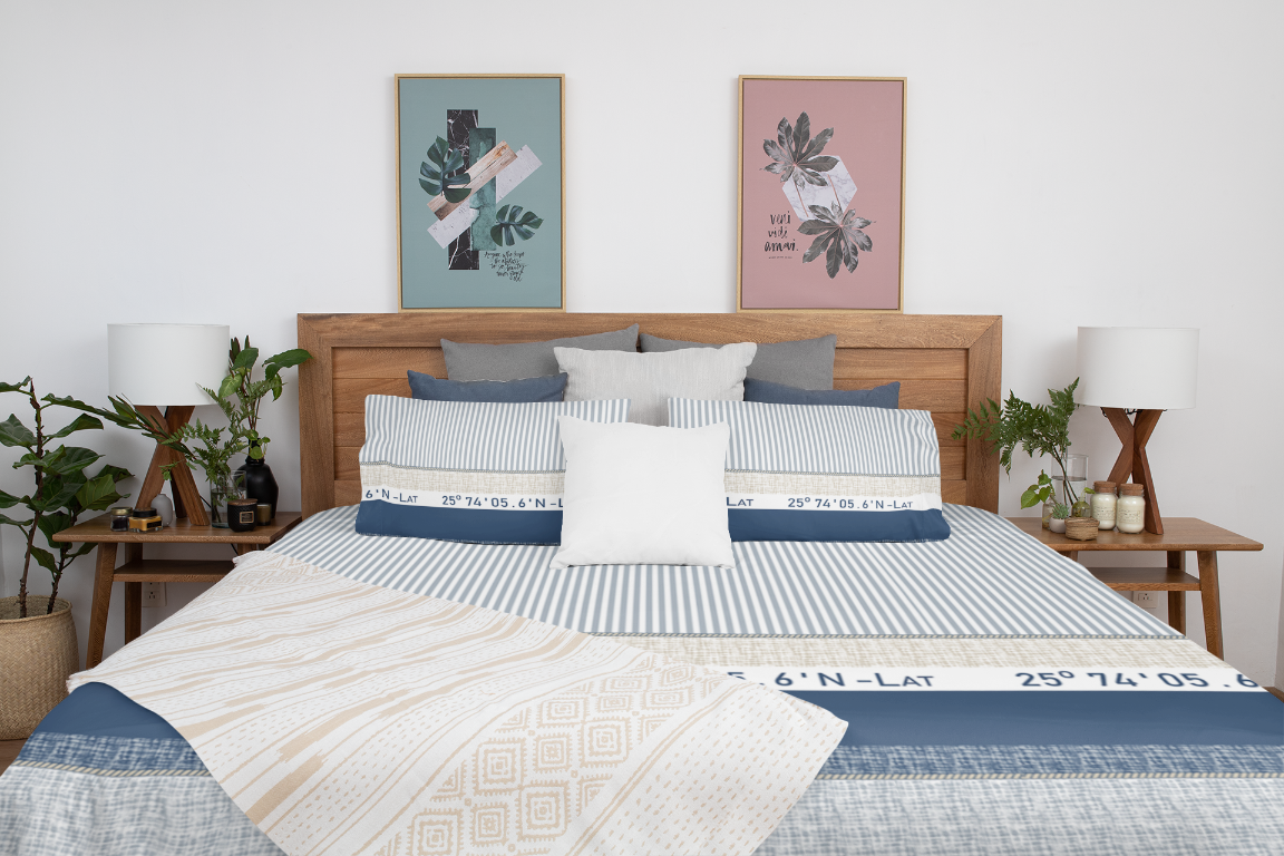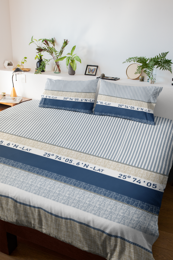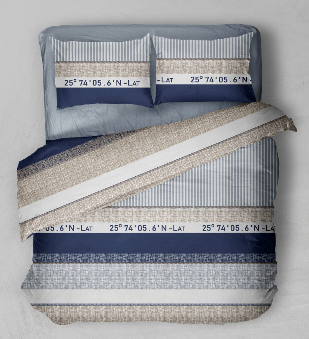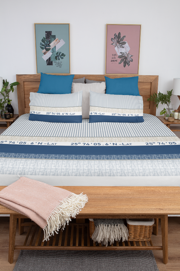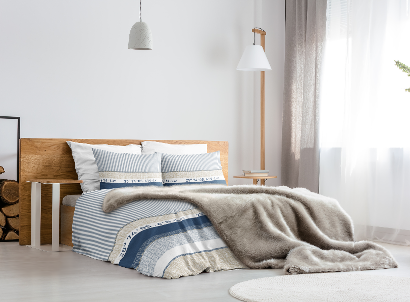 Komplet pościeli 4-cz. flanela bawełniana Compas Blue 220x240 cm to ciepły i przytulny zestaw z dekoracyjnym wzorem o nowoczesnym charakterze – idealny na chłodniejsze dni.
