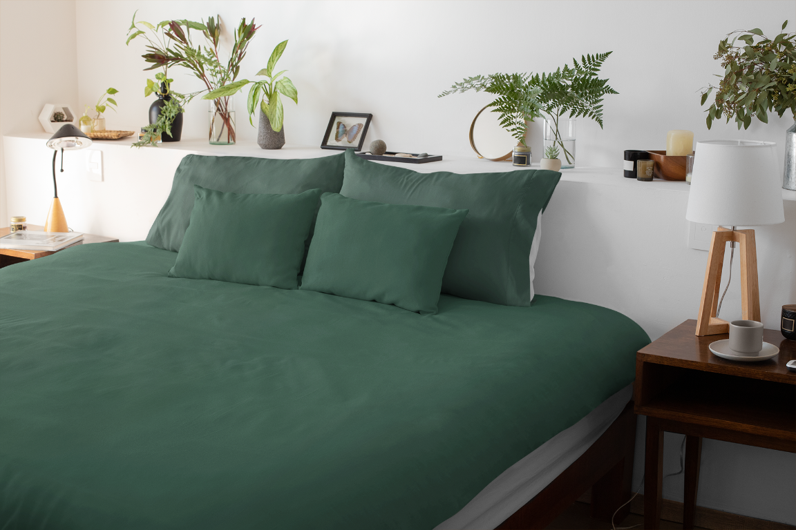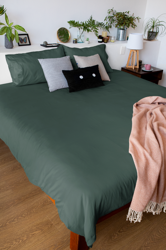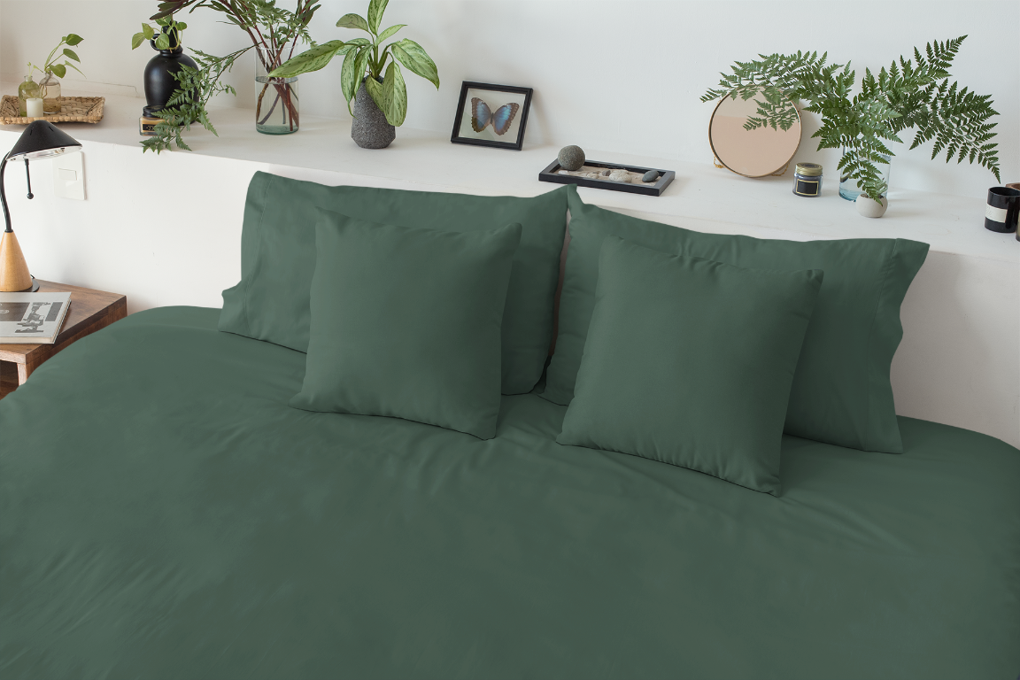 Komplet pościeli 4-częściowy satyna bawełniana Dark Green 220x240 cm to klasyczny jednolity zestaw w intensywnym, butelkowozielonym kolorze – idealny do eleganckich i nowoczesnych wnętrz.