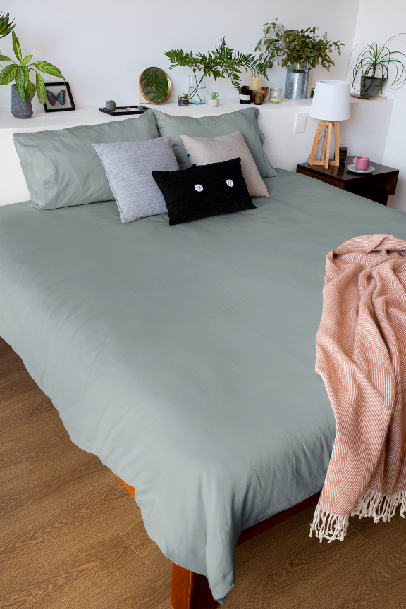 Komplet pościeli 4-częściowy satyna bawełniana Mirage Gray 200x220 cm to klasyczny jednolity zestaw w stonowanym, nowoczesnym odcieniu szarości, który wprowadza spokój i elegancję do sypialni.