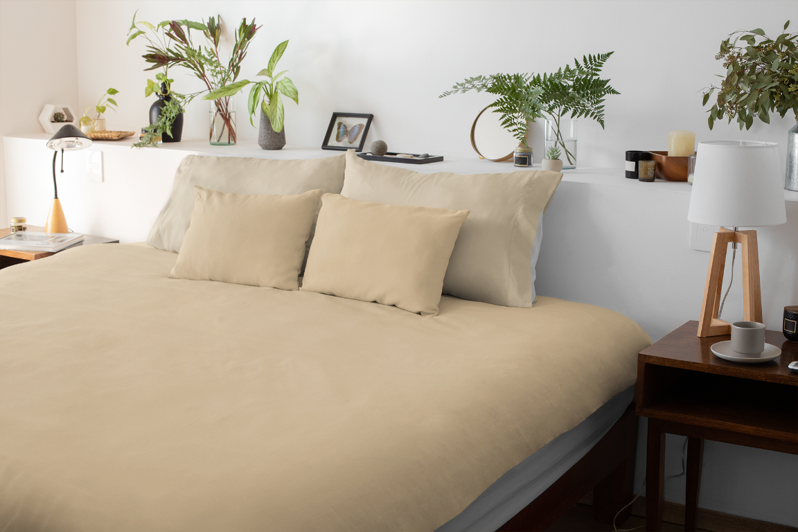 Komplet pościeli 4-częściowy satyna bawełniana Wheat 200x220 cm to klasyczny jednolity zestaw w ciepłym, naturalnym odcieniu beżu, który dodaje wnętrzu harmonii i przytulności.